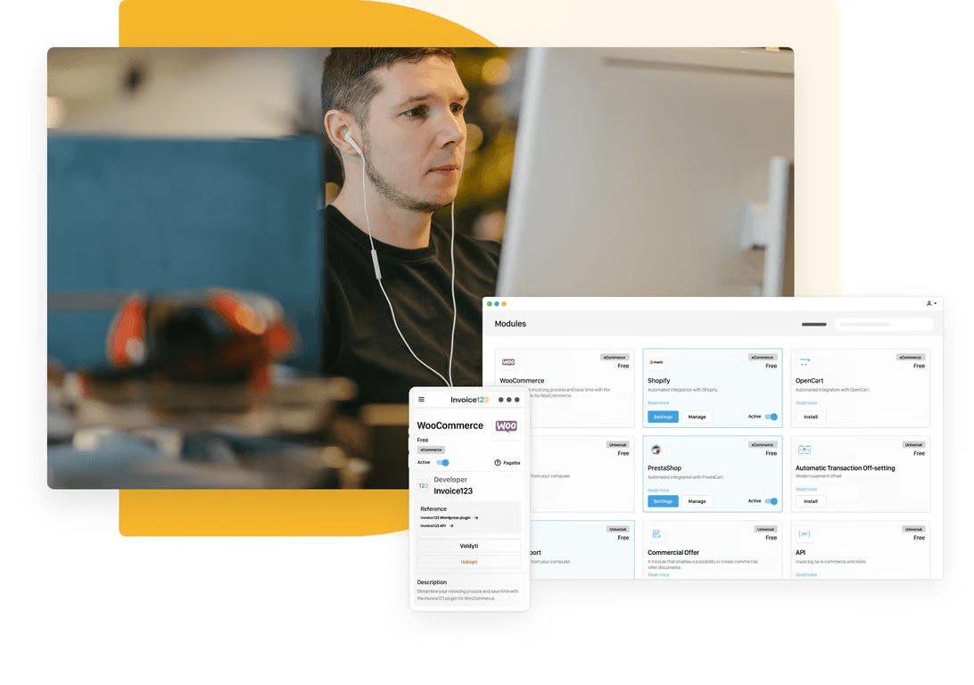 Padari sava e-komercijas uzņēmuma rēķinu izrakstīšanu un grāmatvedību ērti un vienkārši pārvaldāmu ar "Invoice123". Mūsu platformu iespējams saslēgt ar "Shopify" un "WooCommerce". Izmantojot lietojumprogrammu saskarni (API), rēķinu izrakstīšanas procesu iespējams padarīt nemanāmu.